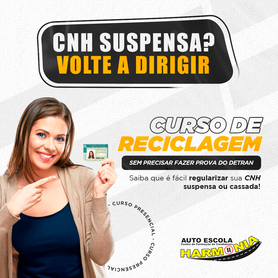 Se a sua Carteira Nacional de Habilitação (CNH) foi suspensa, a solução é realizar o Curso de Reciclagem. Esse curso é obrigatório para que você possa regularizar sua situação e recuperar o direito de dirigir, evitando problemas maiores e retomando sua liberdade no trânsito. Na Autoescola Harmonia você encontra um curso completo, com professores especializados, material atualizado e toda a orientação necessária para que esse processo seja rápido e sem dor de cabeça.